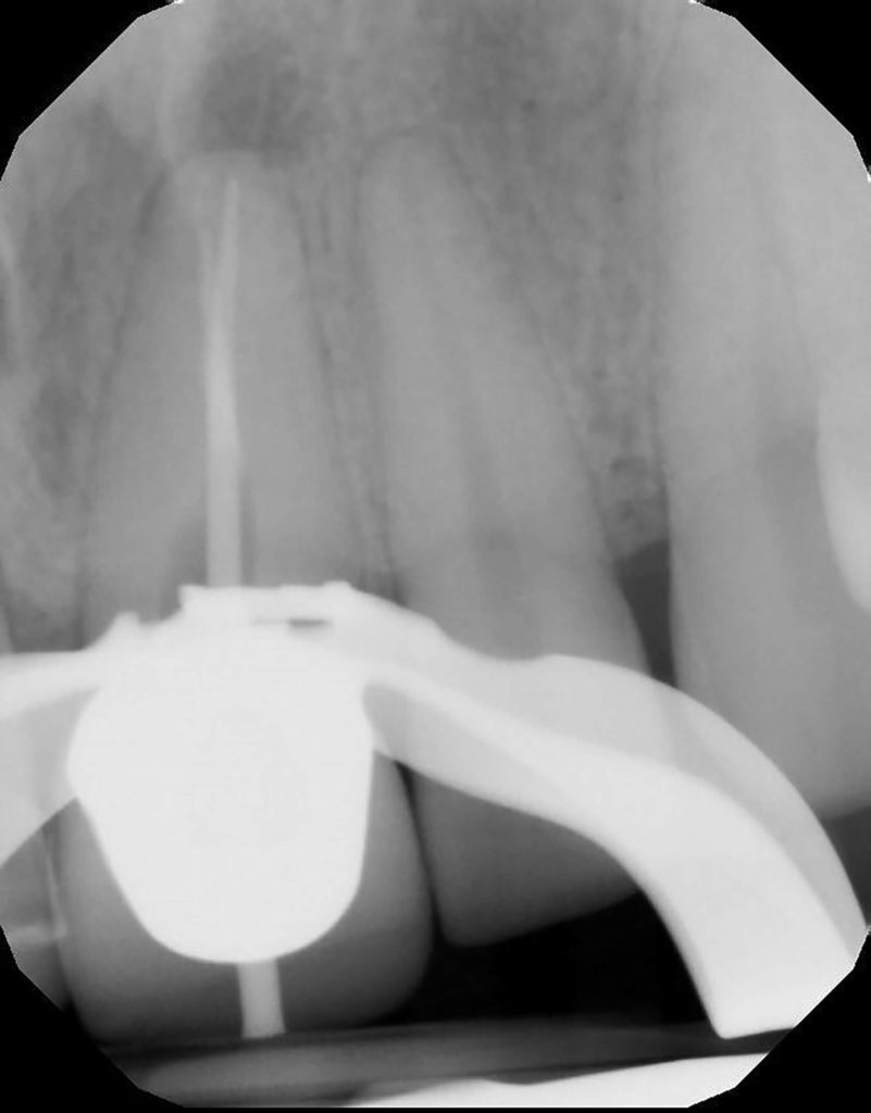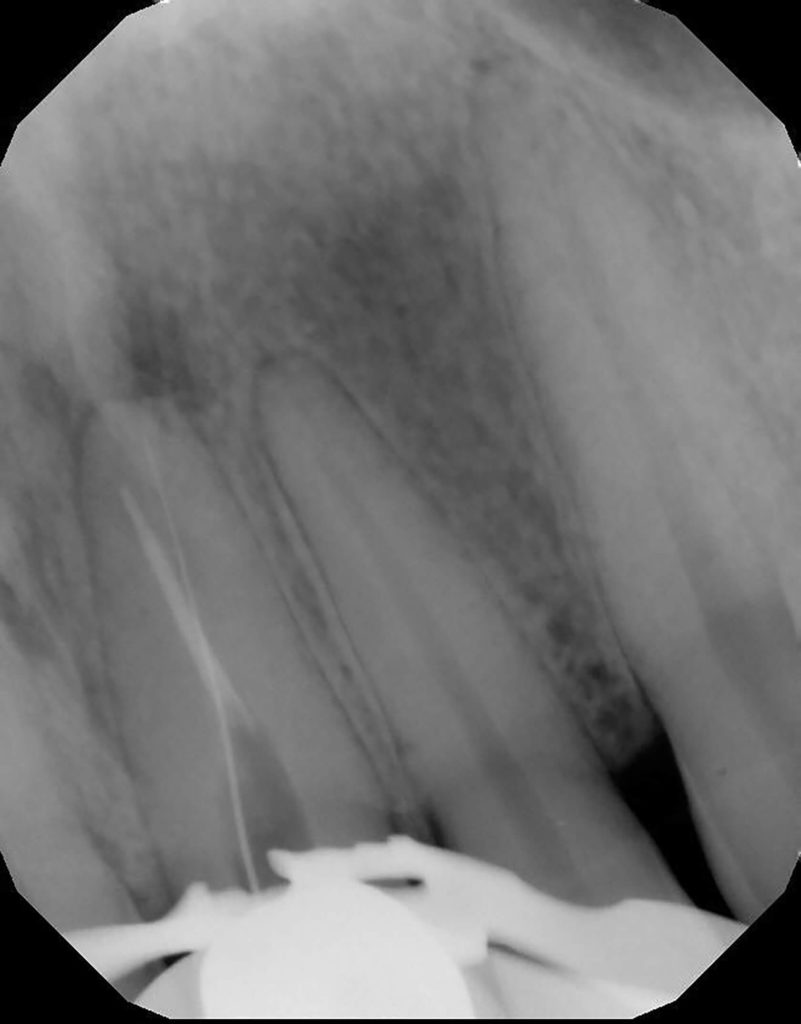 Fun retreatment. Patient had RCT on 9, which was retreated by another endodontist 5 years ago. Patient developed pain and swelling in the area. CBCT revealed a transported canal with a perforation. I was able to locate the canal and hopefully save the tooth!